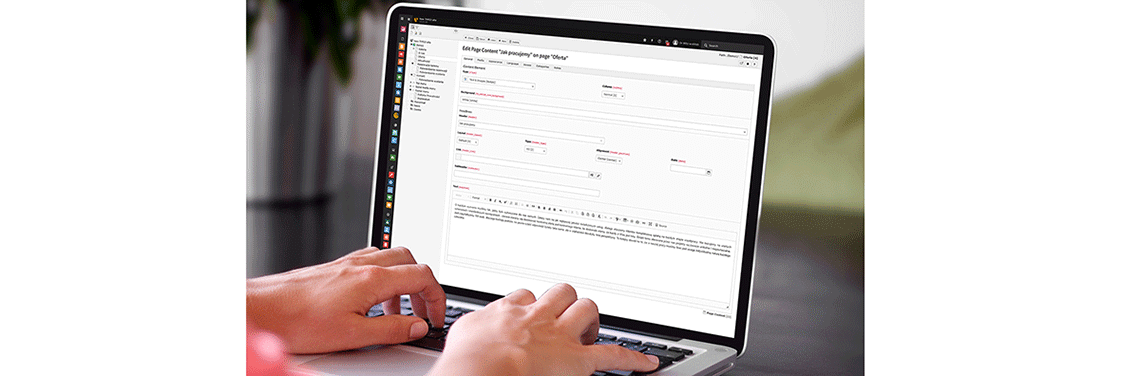 - elementy treści – każda strona może zawierać wiele elementów treści, takich jak teksty, obrazy, wideo, galerie czy formularze, dzięki temu możliwe jest precyzyjne kontrolowanie układu i zawartości każdej strony.
